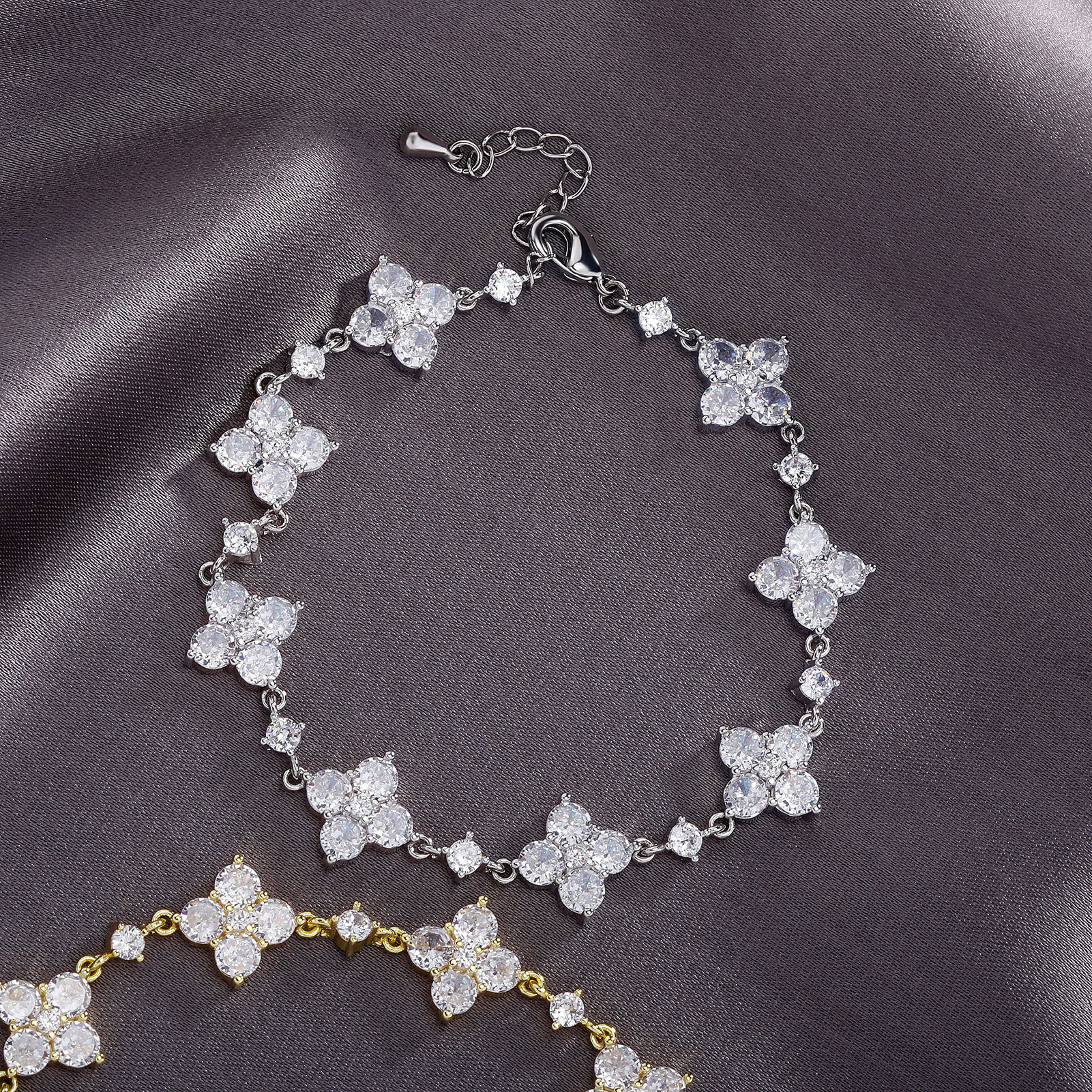 Colors Available: Golden green zircon, Golden black zircon, Golden pink zircon, Golden white zircon, Silver green zircon, Silver black zircon, Silver pink zircon, Silver white zircon, Golden green zircon (four-flower), Silver green zircon (four-flower)