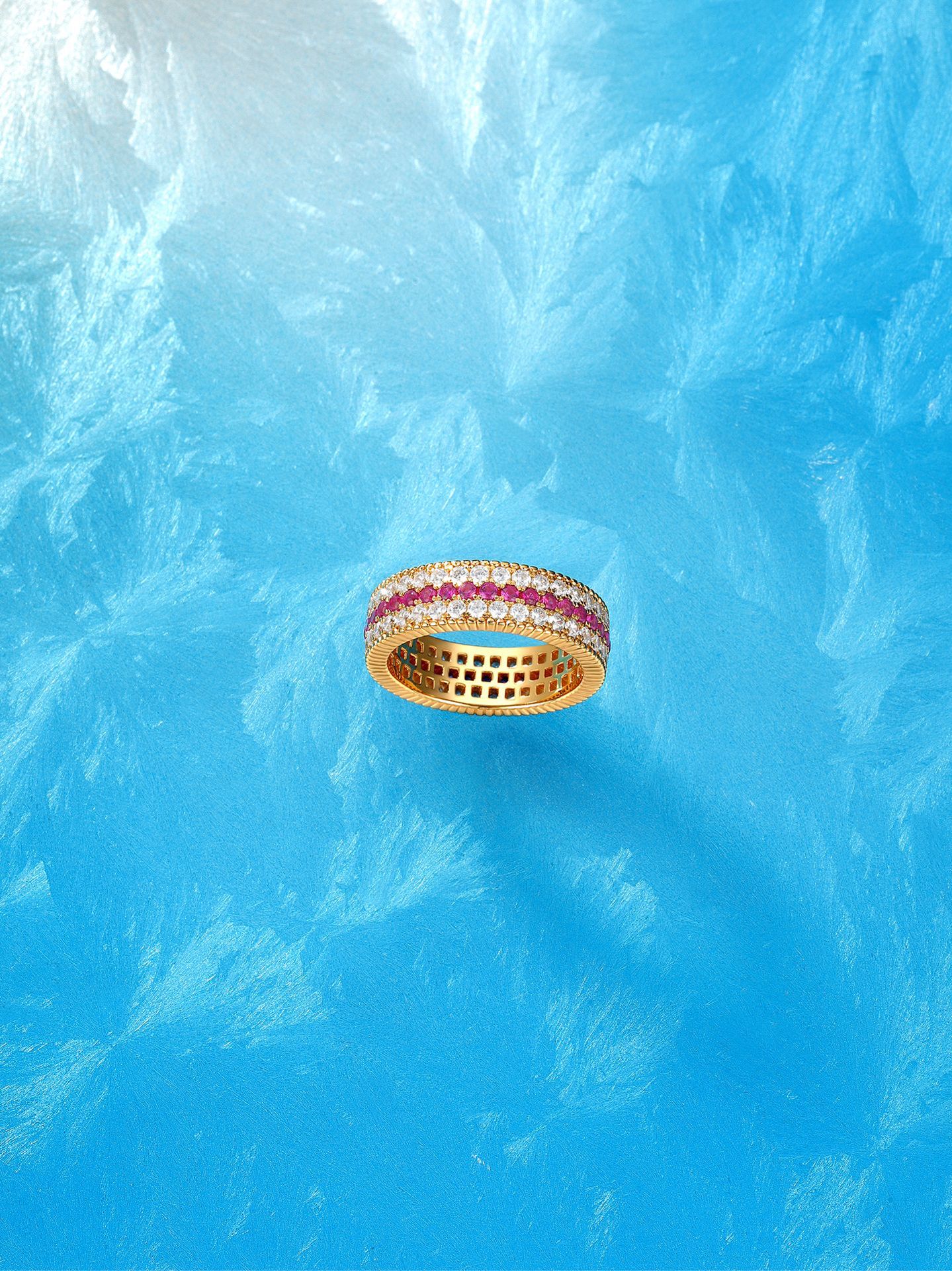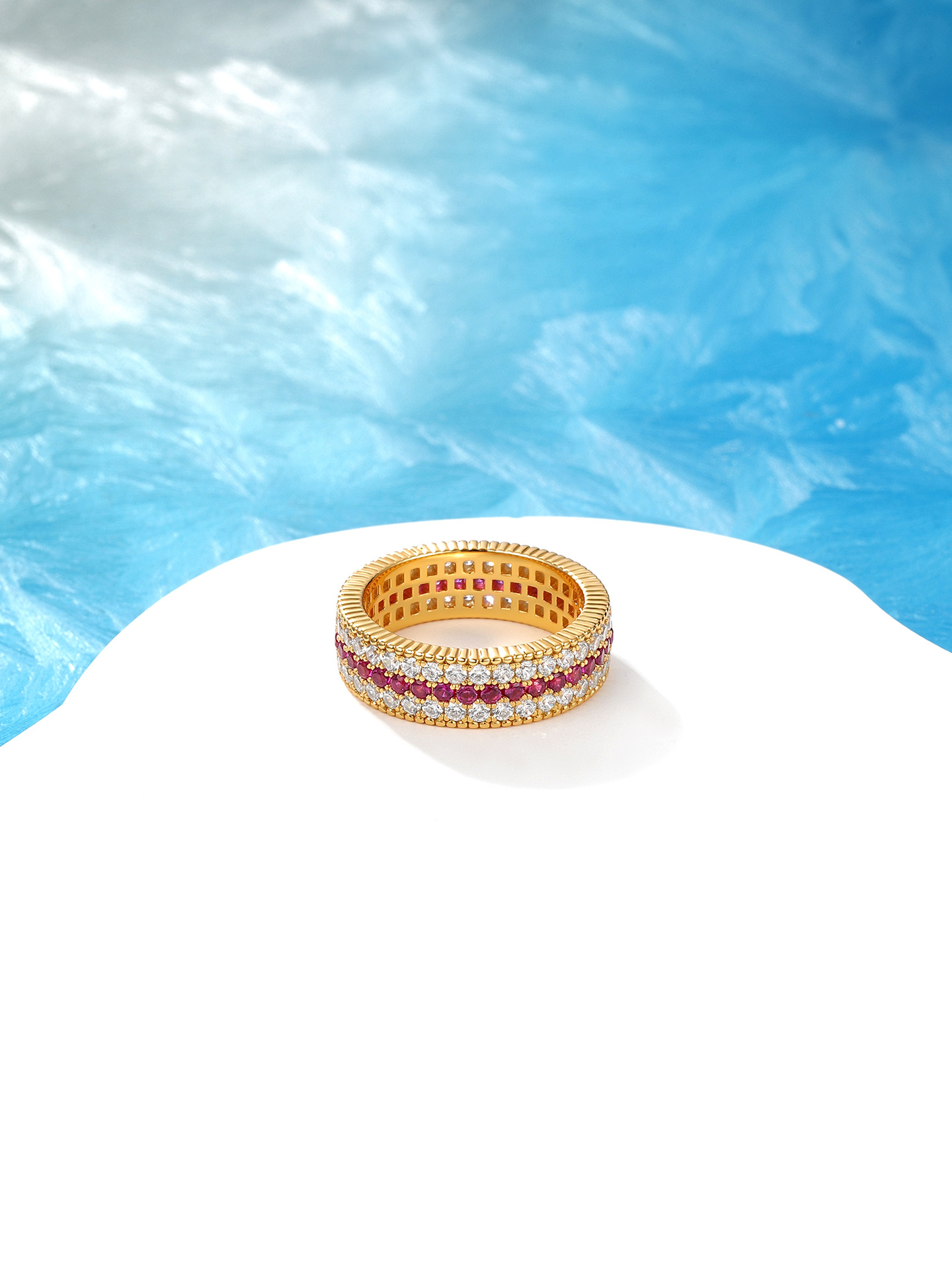 Three-Row Design: Unique triple-row setting with gypsophila (baby's breath) diamond accents for a delicate, layered appearance.